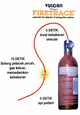 sekaligus bertindak sebagai detektor api yang fleksibel. Selang ini terbuat dari bahan Polymer khusus untuk melacak sumber api dan penyalur gas yang unik. Firetrace tidak tergantung pendeteksian api pada satu titik saja tetapi disepanjang selang fleksibel. Sistem pemadaman semacam ini bisa digunakan secara tersendiri atau dapat juga sepenuhnya dikendalikan dengan kombinasi sistem alarm dan pemutus arus listrik dari peralatan yang dilindungi. Pilihan ini menawarkan peringatan dini pada saat pemadaman bekerja dan sangat mengurangi resiko penyalaan
